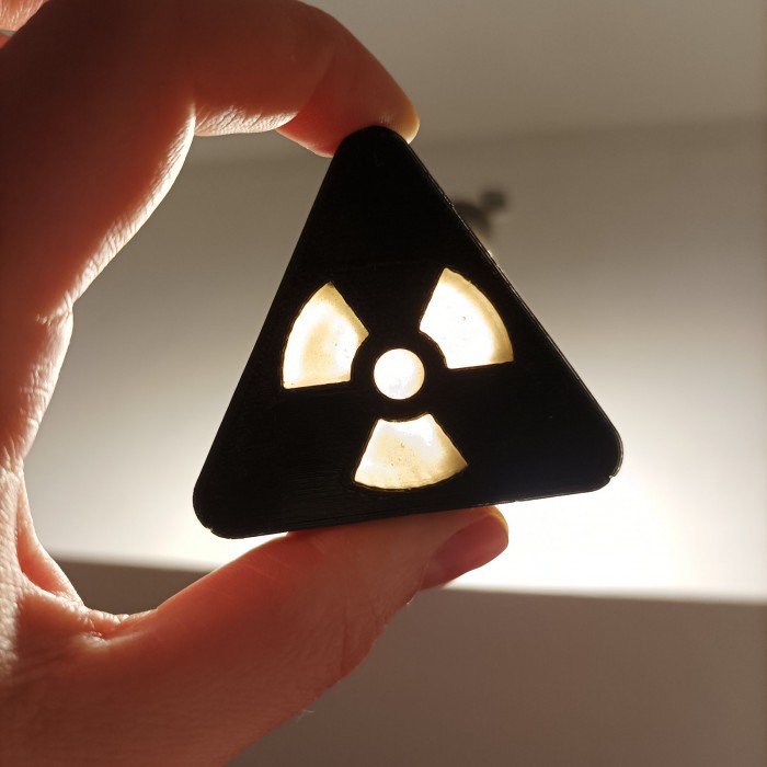 Трикутний артефакт знак радіаційної небезпеки, котрий світиться в темряві.
