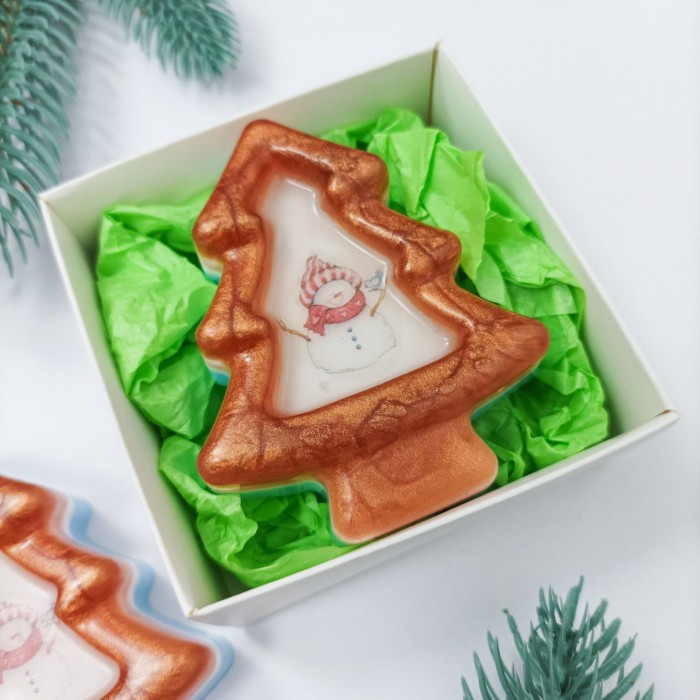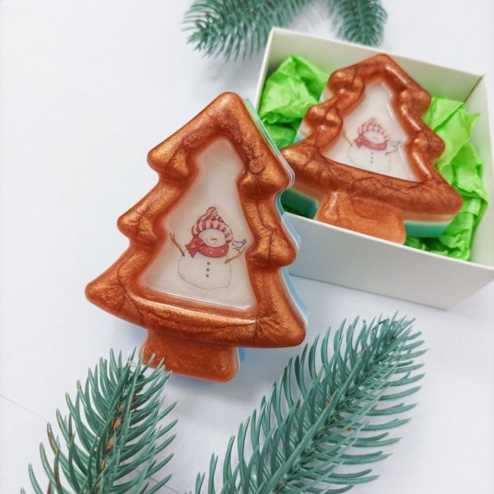 Мило ручної роботи "Ялинка з картинкою" Сніговик