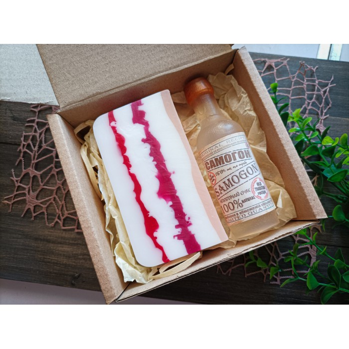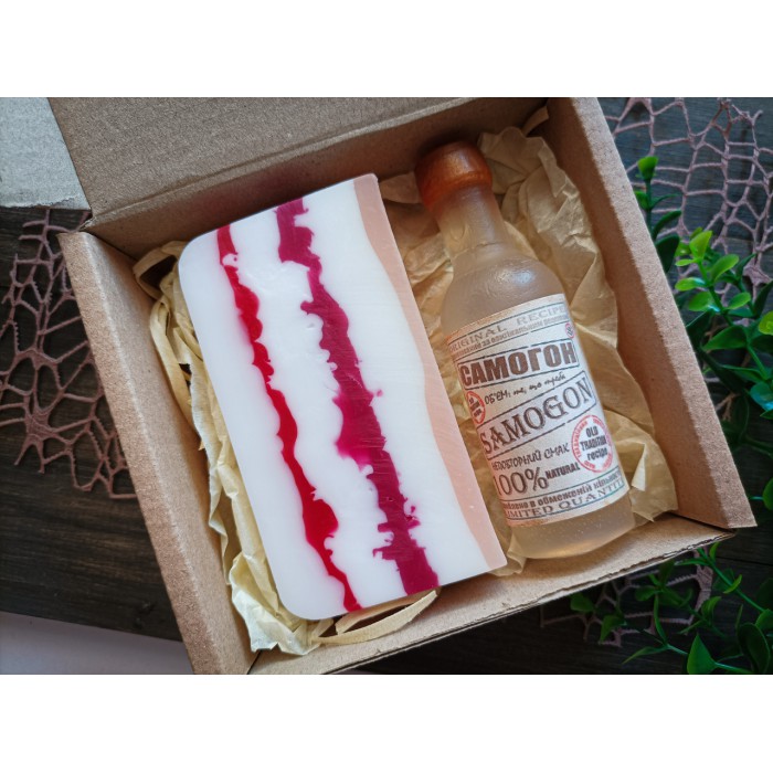 Подарунковий набір мила ручної роботи "Самогон з салом" 13х11,5х5см
