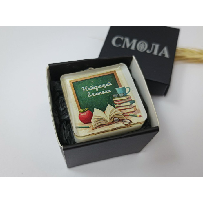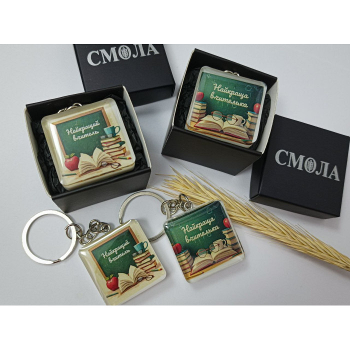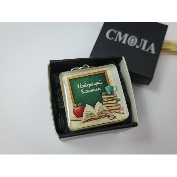 Цей стильний брелок стане ідеальним подарунком для вашого улюбленого вчителя. Він виготовлений з металу та епоксидної смоли, що забезпечує довговічність та стильний вигляд. Брелок поставляється в крутій подарунковій коробочці.