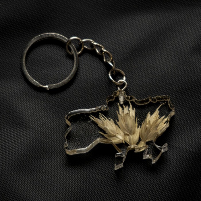 Брелок у вигляді карти України з колосками пшениці всередині