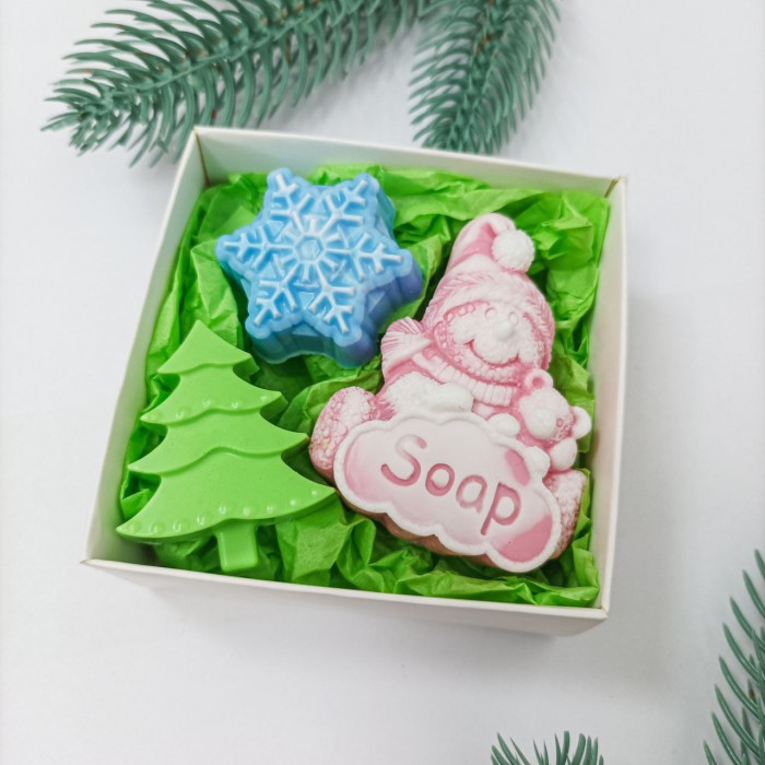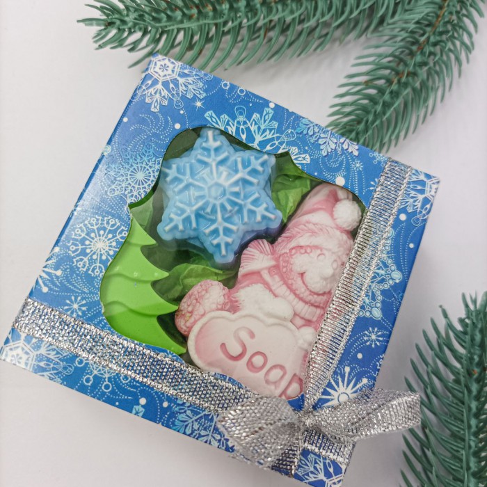 Мило ручної роботи "Сніговик, сніжинка і ялинка"