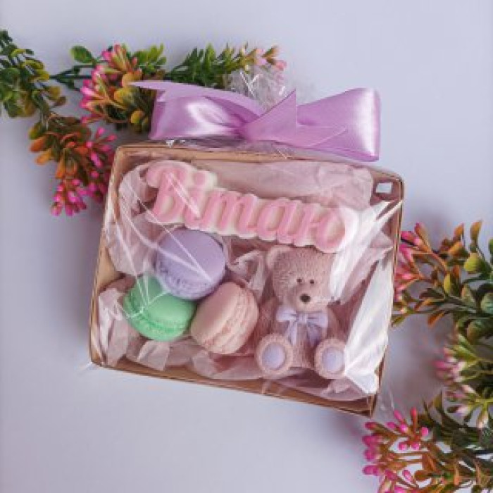 Набір мила ручної роботи "Вітаю, макарон, ведмедик"