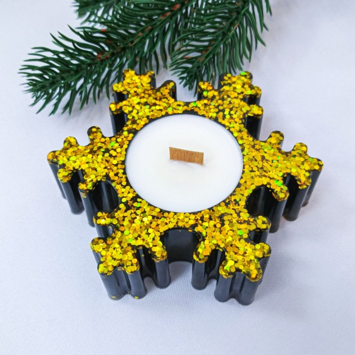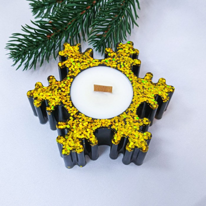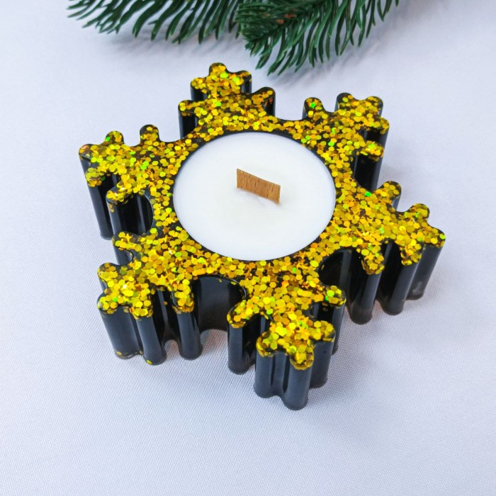 Новорічний підсвічник з епоксидної смоли "Сніжинка" зі свічкою з високоякісного соєвого воску V5
