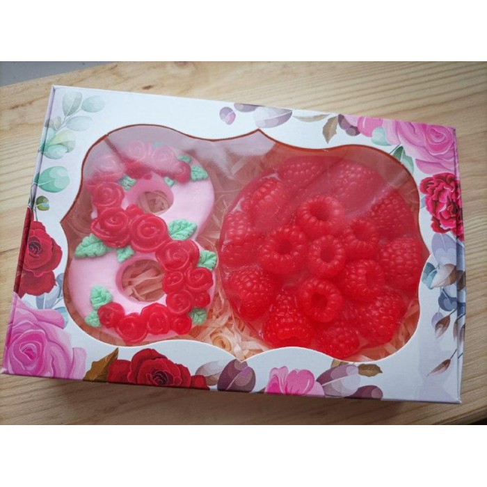Подарунковий набір мила ручної роботи "З 8 березня" Троянда з малиною