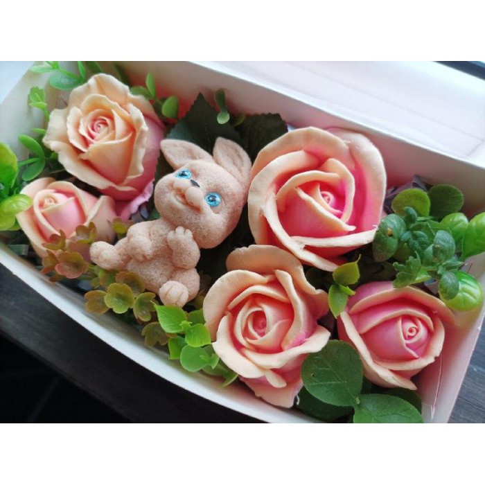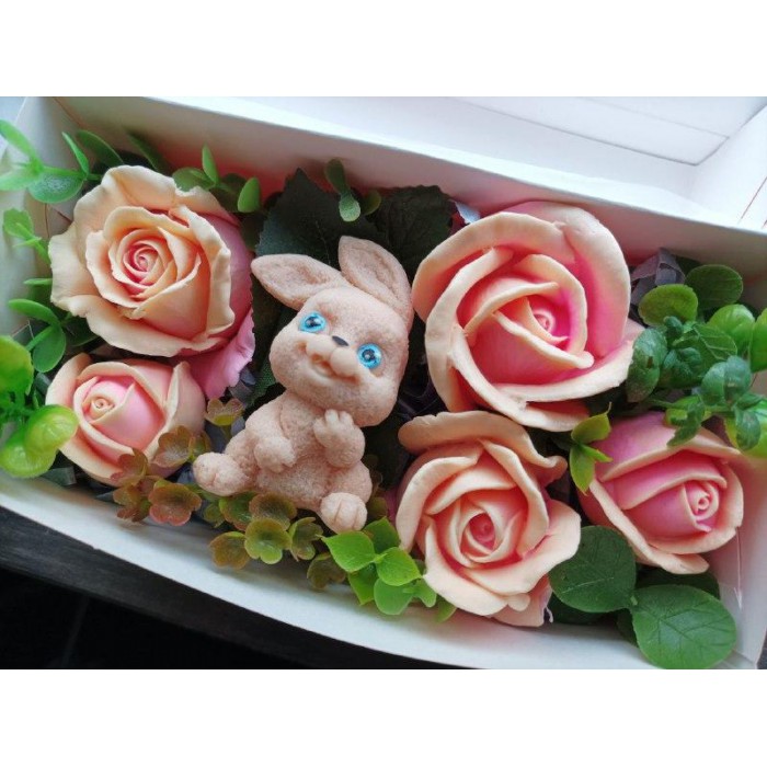 Подарунковий набір мила ручної роботи "Зайчик в трояндах"