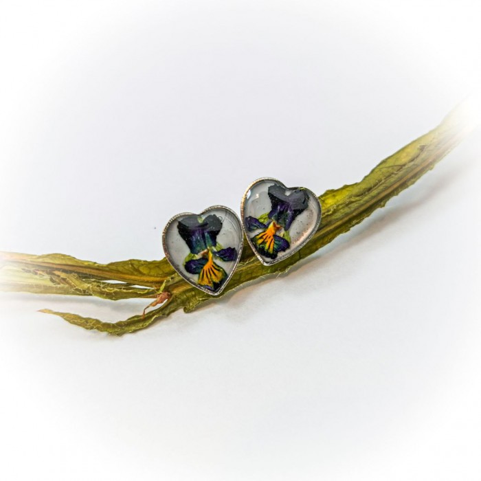 Сережки-гвіздочки з сухоцвітами у формі серця Братики на білому фоні